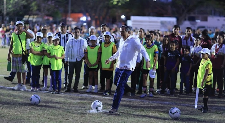 Como parte de sus actividades, el mandatario tamaulipeco llegó a la colonia Alejandro Briones, sector El Chocolate, en donde inauguró un campo deportivo como parte del Mundialito Social, con motivo de la Copa Mundial de la FIFA.