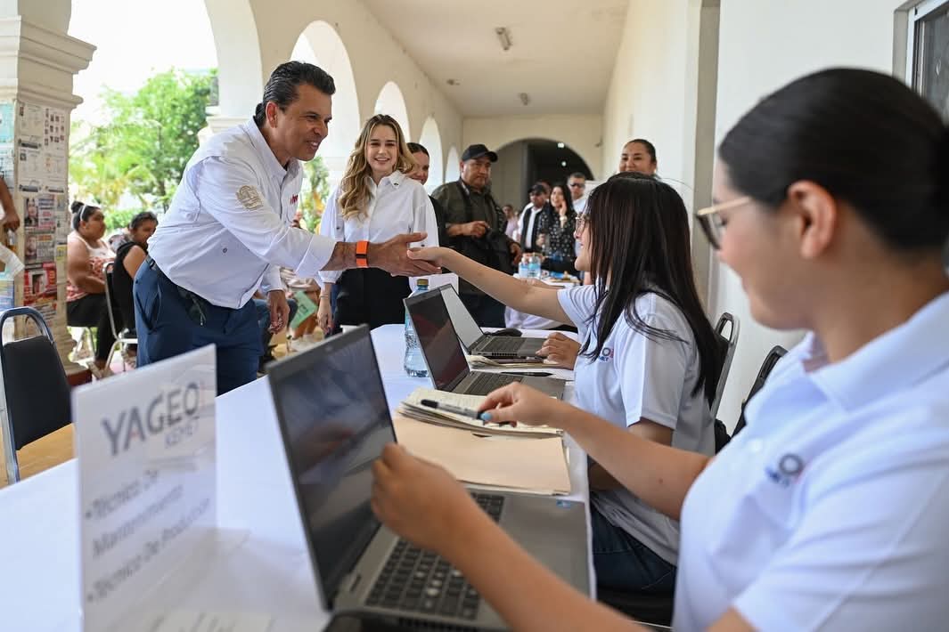 El alcalde Eduardo Gattás Báez, junto a su esposa Lucy de Gattás, visitó los módulos de contratación para agradecer a las empresas participantes la oportunidad de insercion laboral que ofrecen al ciudadano y el impulso a la economía de la Capital del Estado.