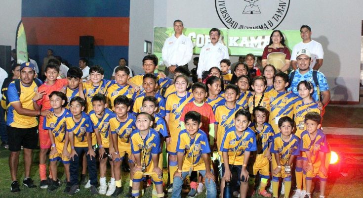 En el marco del fortalecimiento de la vinculación social y el impulso a la formación integral de la niñez y juventud, el rector de la Universidad Autónoma de Tamaulipas (UAT), Dámaso Anaya Alvarado, inauguró la Copa Kama’s de futbol la noche de este viernes 17 de abril en las instalaciones del Gimnasio Multidisciplinario Mante, espacio universitario que fungió como sede del evento.