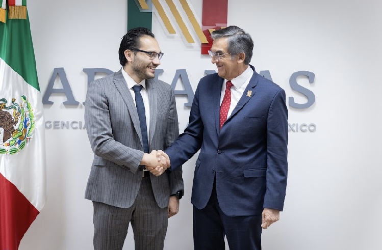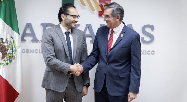Ciudad de México.- El gobernador de Tamaulipas, Américo Villarreal Anaya, presentó al nuevo titular de la Agencia Nacional de Aduanas de México, Héctor Alonso Romero Gutiérrez, los proyectos estratégicos como el Puerto Interior de Tamaulipas y la Administración Portuaria Integral de Matamoros, que siguen avanzando de la mano del Gobierno de México, que encabeza la presidenta Claudia Sheinbaum, para generar desarrollo y bienestar para las y los tamaulipecos.